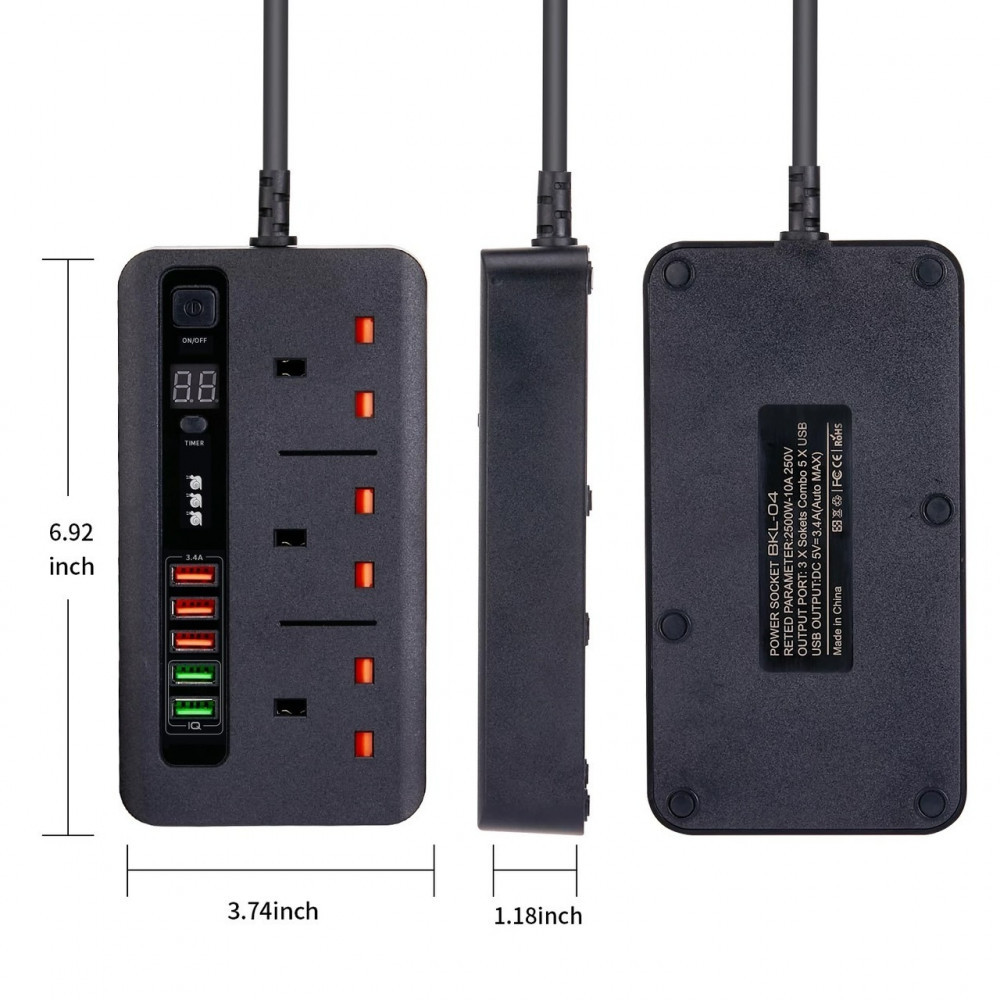3- It contains three electrical outlets and 5 USB ports that support fast charging