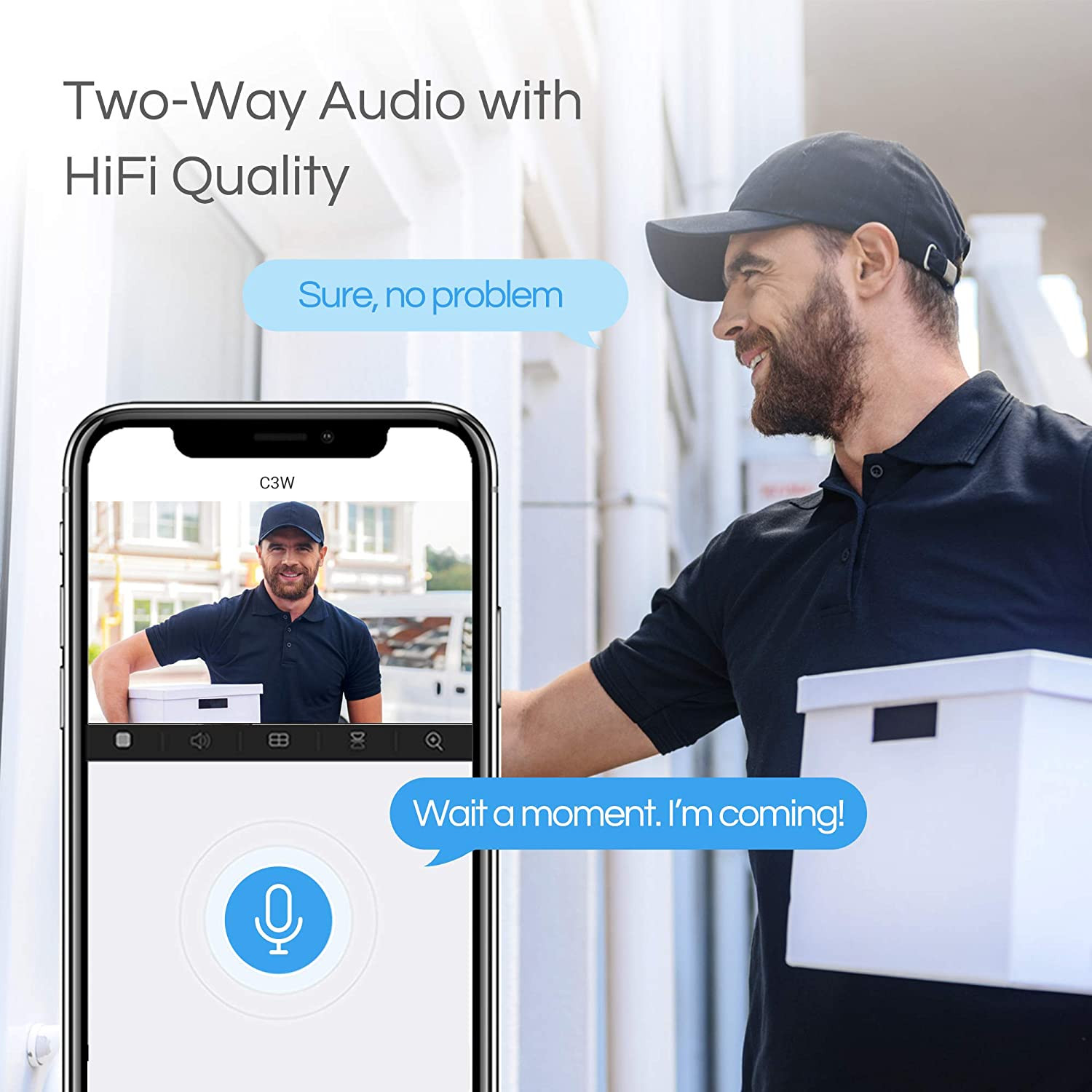 • 【Two-Way Talk】EZVIZ C3W WiFi camera, outdoor surveillance camera comes with a built-in microphone and a speaker, so you can effortlessly hear and talk to your family, welcome visitors, or turn away uninvited guests by simply using your smartphone.