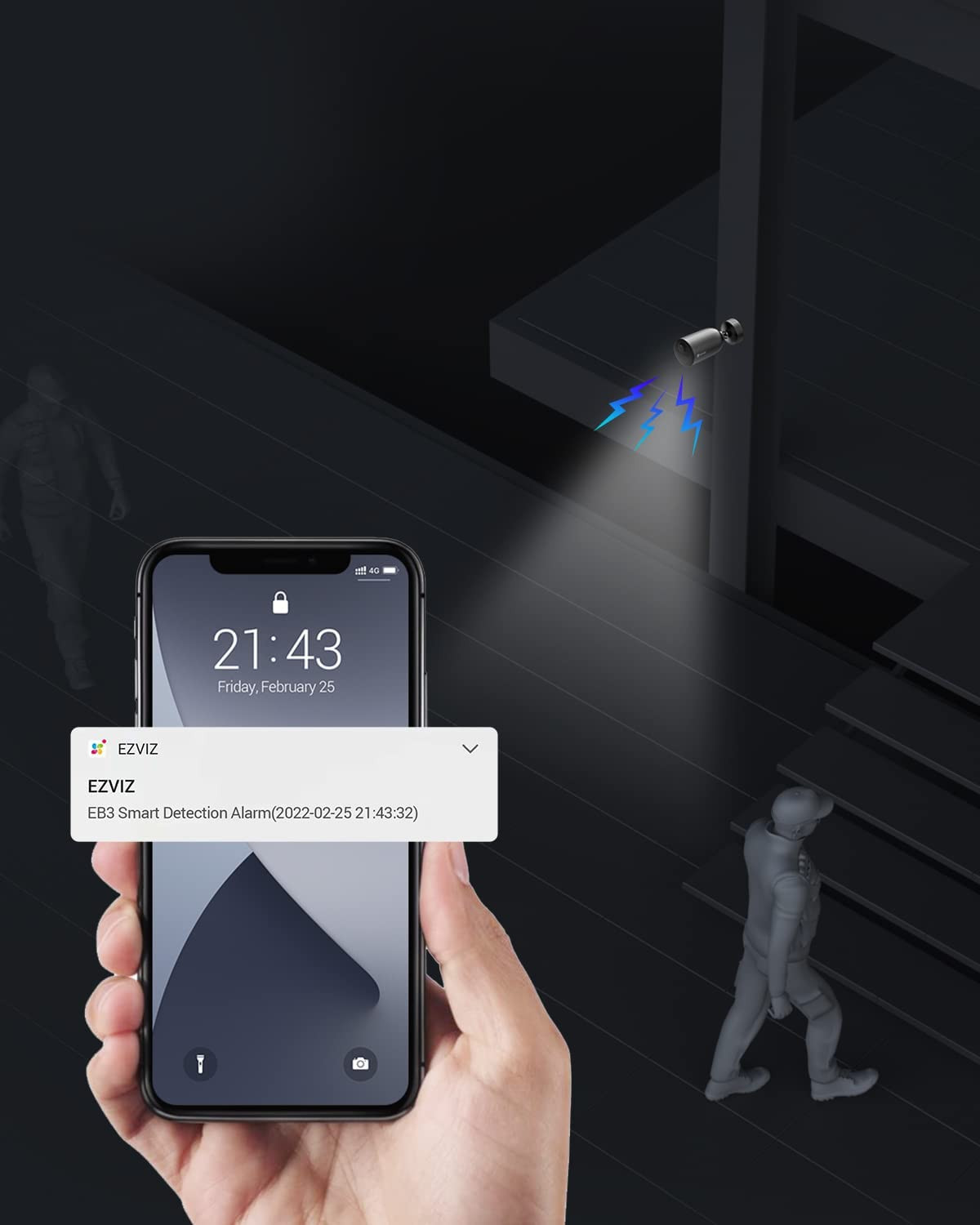 EZVIZ EB3 Security Camera with Battery, 2K Wifi Camera CCTV, Outdoor Wire-free IP Camera with Two-way Audio, Waterproof, PIR, Smart Human Motion Detection, 256GB Storage, Work with Solar Panel & Alexa