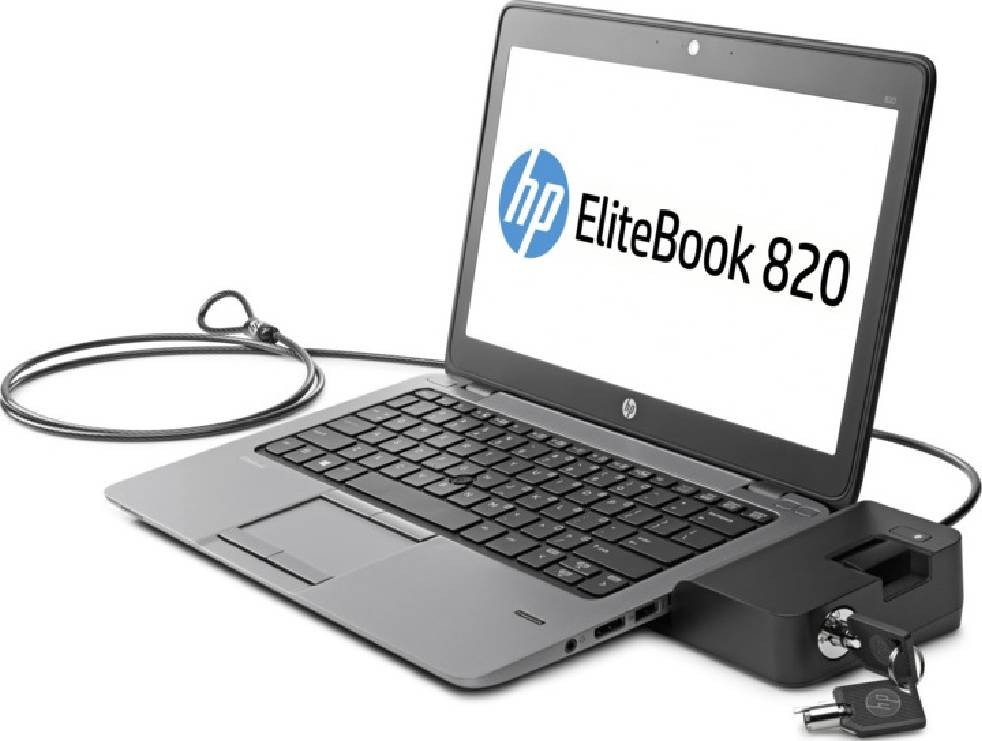 Secure the connected notebook to the dock with the optional HP Docking Station Cable Lock (sold separately).