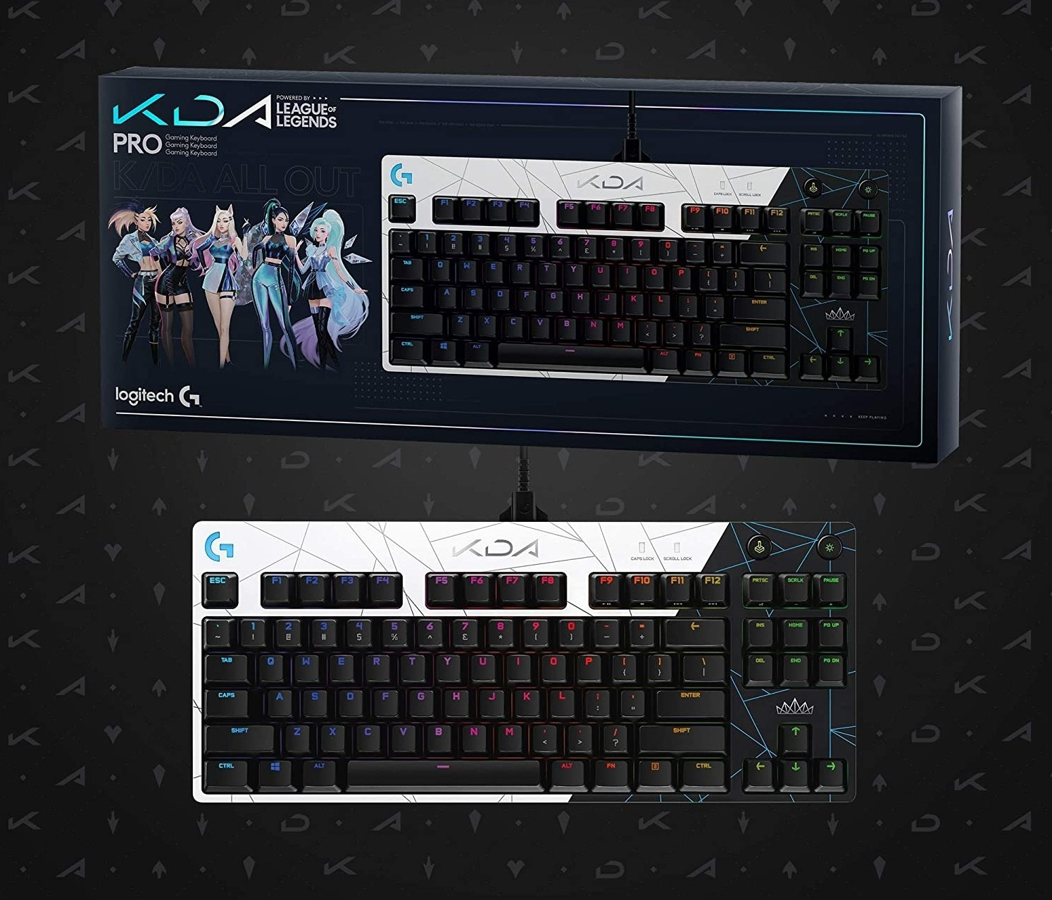 Description for Logitech G Pro K/DA LOL Mechanical Gaming Keyboard, Tenkeyless Design, Detachable Micro USB Cable, 16.8M Colour LightSync RGB - Black/White | 920-010077