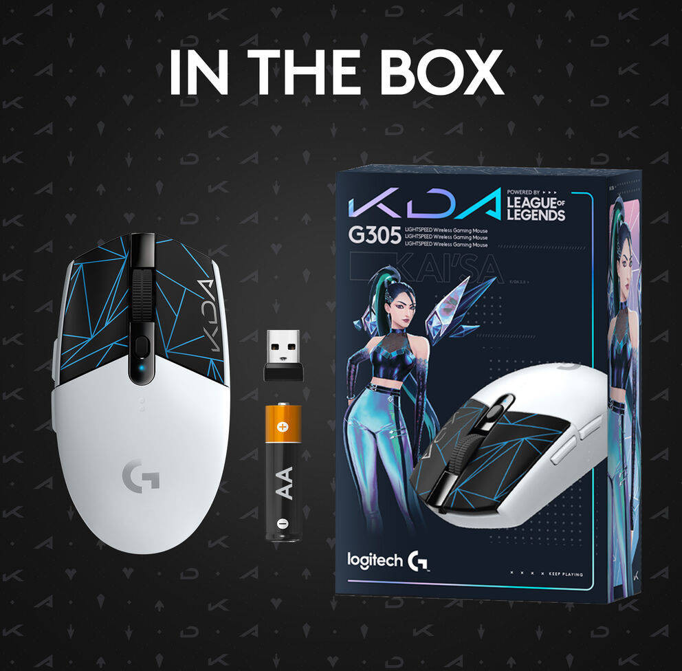 - Play All Out: G305 K/DA gaming mouse is designed with official League of Legends alt-universe K/DA art for a complete and immersive play experience