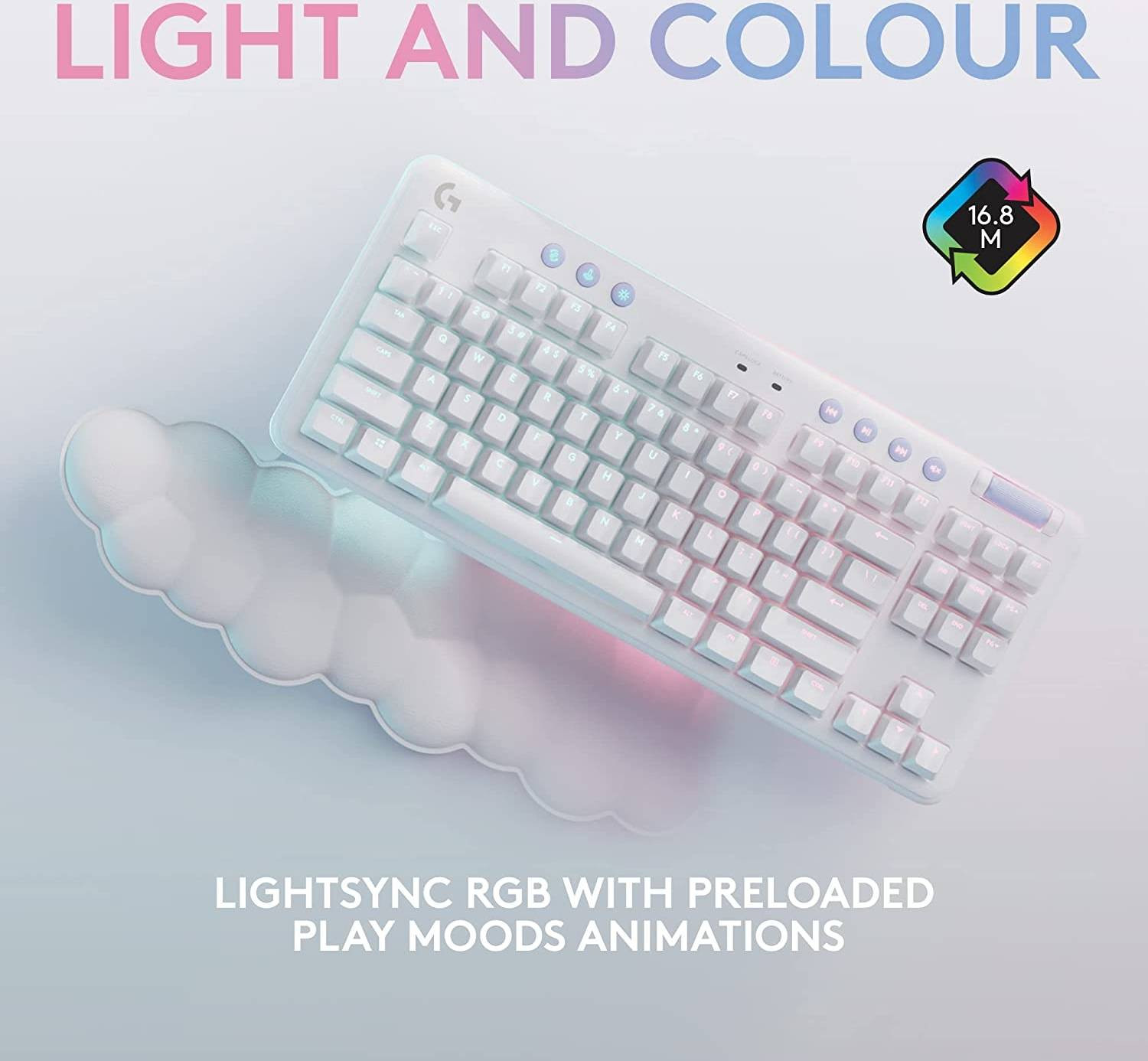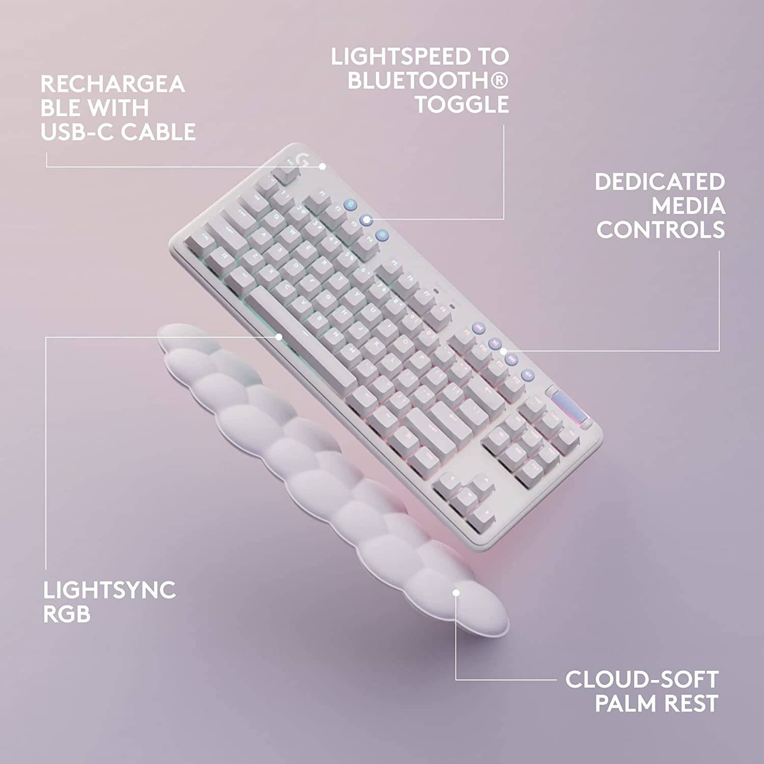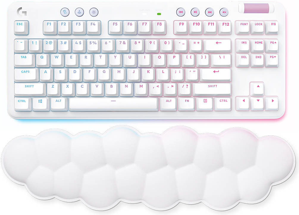 A compact, tenkeyless footprint with adjustable height makes for comfortable all-day play. Cloud-soft palm rest included to complete your dreamy desktop vibes.
