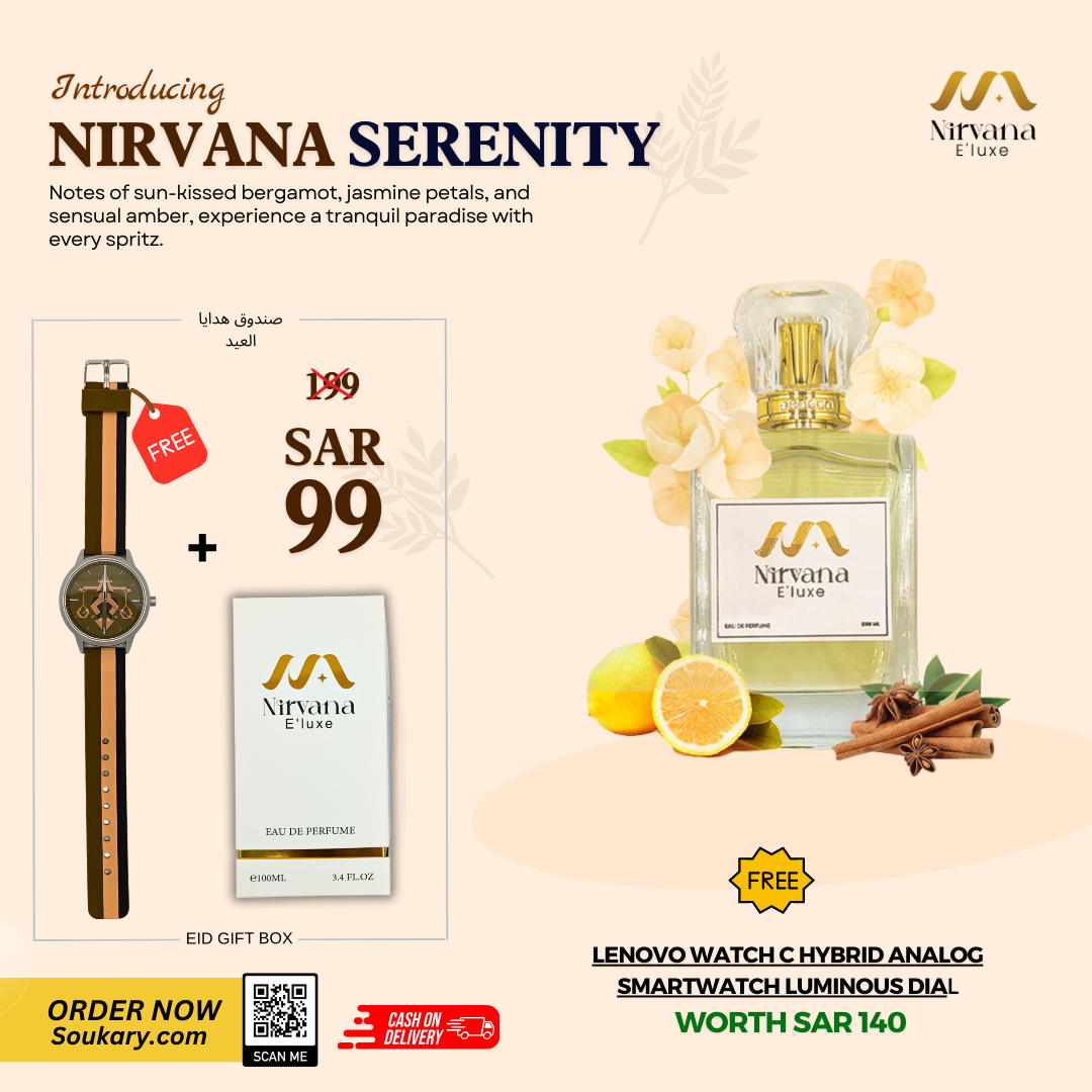 Introducing Nirvana Serenity, an exquisite perfume that captures the essence of pure bliss. With notes of sun-kissed bergamot, jasmine petals, and sensual amber, experience a tranquil paradise with every spritz.