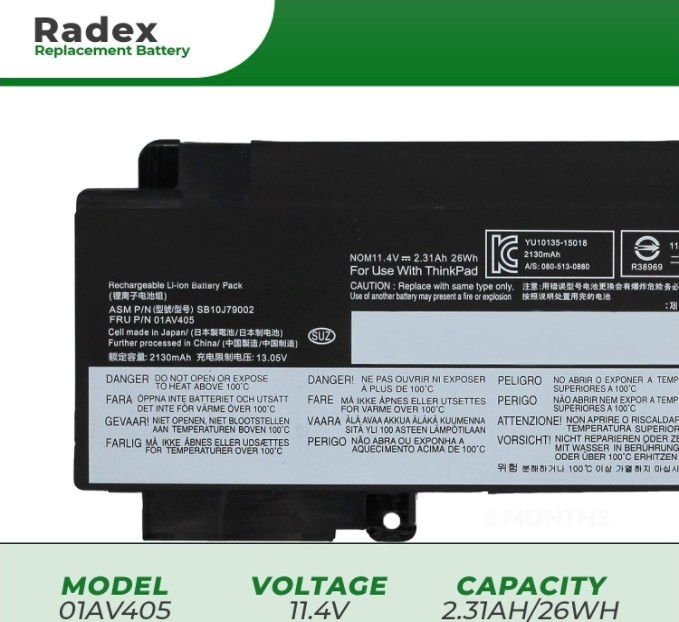 We offer the best price for Radex 01AV405 Compatible Laptop Battery, For Lenovo Thinkpad T460S / T470S Series Notebook, 13.05 Volts, 2130mAh / 26Wh Capacity, Black | T460S in Saudi Arabia. Buy now with the best price!