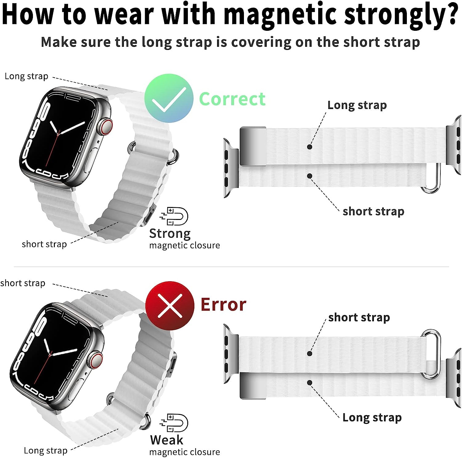 • ✅【Upgrade Designed for Apple Watch Band】The magnetic Link band adding unique sewing process to effectively enhance the durability of the strap, never ever worried about your watchband delaminate or come apart, Unique wearable system that allows to wear your band in seconds.