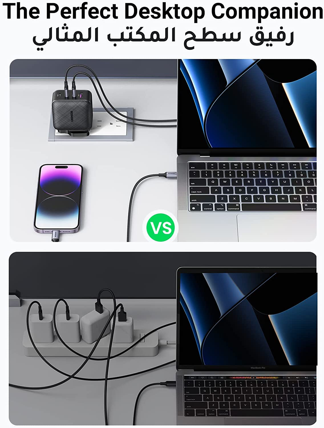 • 【65W Powerful Charger】: UGREEN 4 port USB C PD charger, with the combine power output of 65W, offers fast and efficient charging for laptop, tablet, phones, fully charge the Macbook Pro within 1.8h.