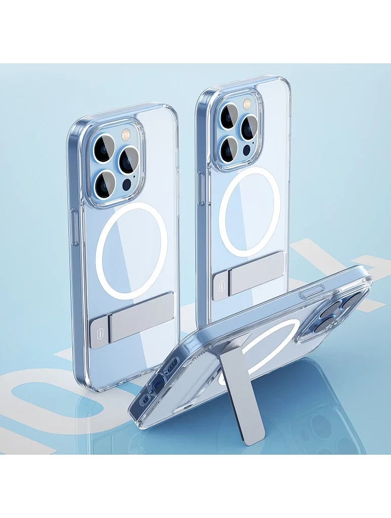 WiWU Magnetic Wireless Charging Phone Case with Portable Stand HD Clear Phone Back Cover for iPhone 14
