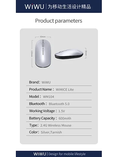 WiWU Dual Model Premium Wireless Mouse with Bluetooth and 2.4G Wireless Mouse
