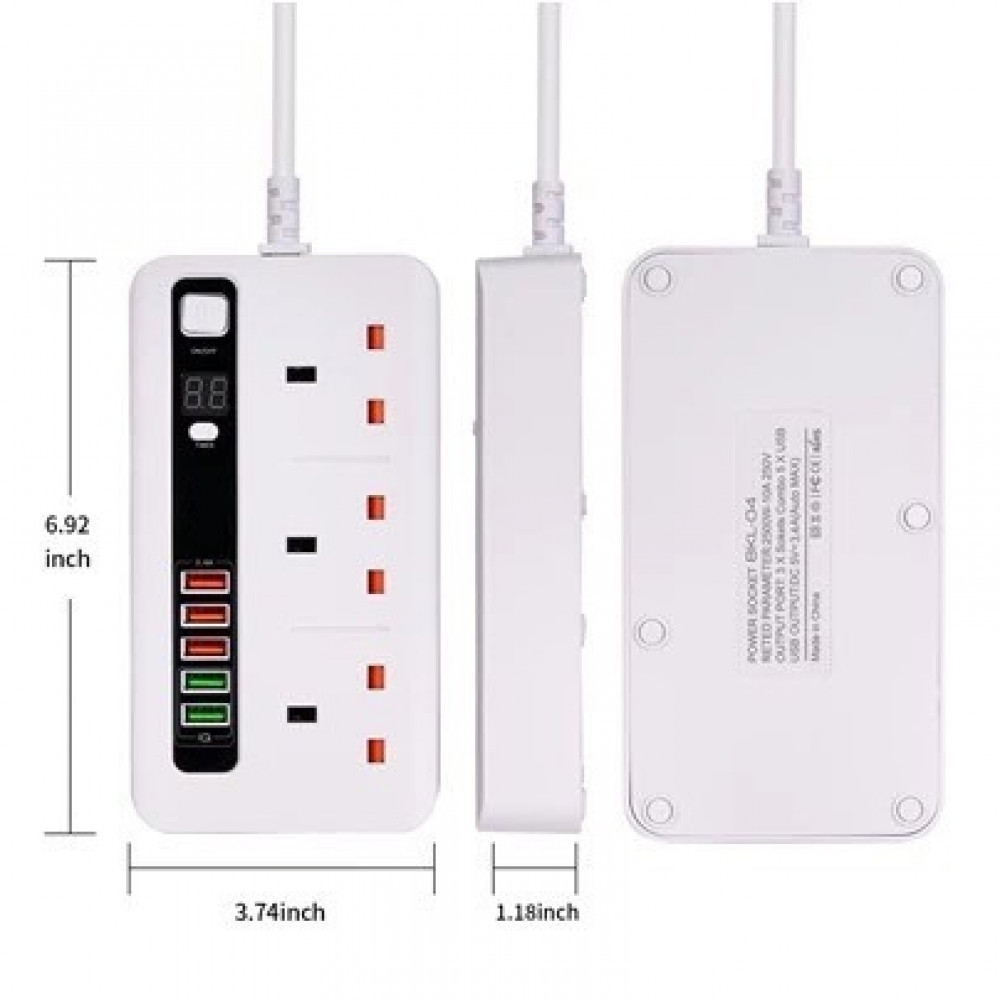 3- It contains three electrical outlets and 5 USB ports that support fast charging