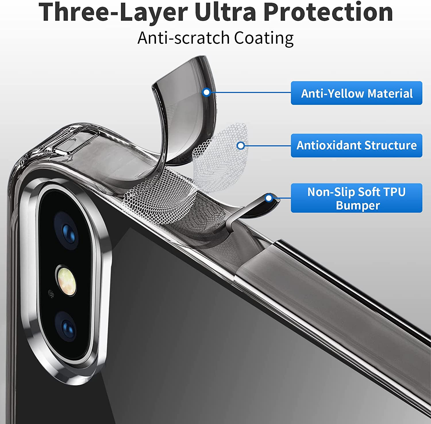 • [Slim]: The Case for iPhone X and Xs was made of clear polycarbonate and flexible materials, Its slim form slides in and out of pockets easily while the edges give you a confident hold while Call Up, Texting, Gaming and Selfies.