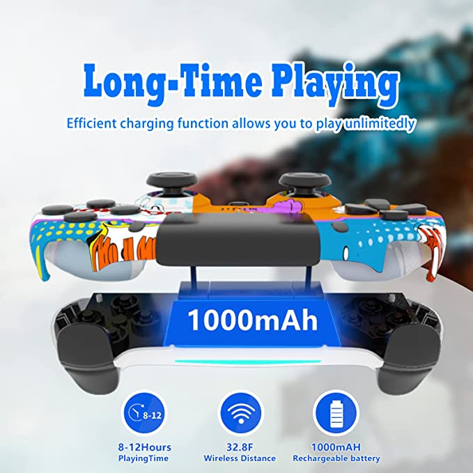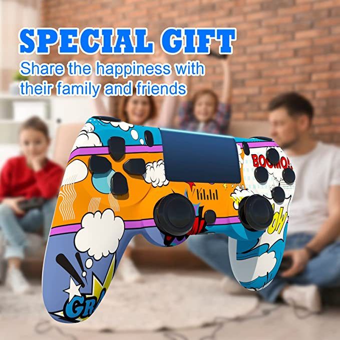 ELE3ST Wireless Controller for PS4 Remote, Dual Vibration and Audio Function and Stereo Headphone Jack, exquisite graffiti and Six-axis Motion Control for Pro / Slim / PC / iOS / Android / Steam​