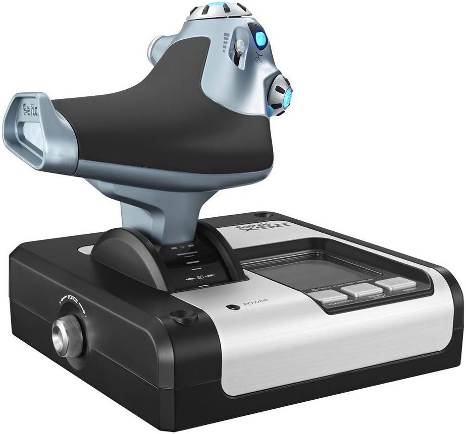 X52 delivers precise flight simulator operation, employing a multifunction LCD for easy access to an astounding minimum of 105 programmable commands. Coordinate your flight plan with clock and stopwatch function. Fly long comfortable stretches with adjustable handle to accommodate a wide range of hand sizes.