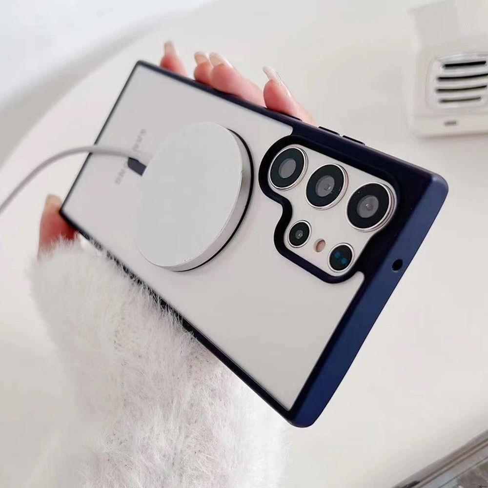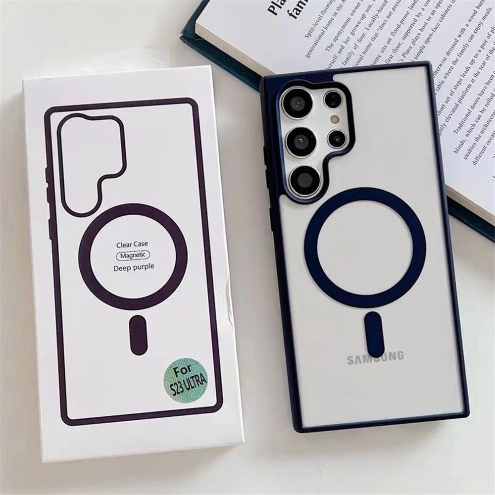 Magnetic Magsafe Wireless Transparent Clear Case for Samsung Galaxy S22 Ultra(Color,blue)