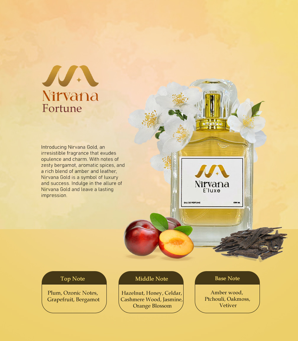 Introducing Nirvana Gold, an irresistible fragrance that exudes opulence and charm. With notes of zesty bergamot, aromatic spices, and a rich blend of amber and leather, Nirvana Gold is a symbol of luxury and success. Indulge in the allure of Nirvana Gold and leave a lasting impression.