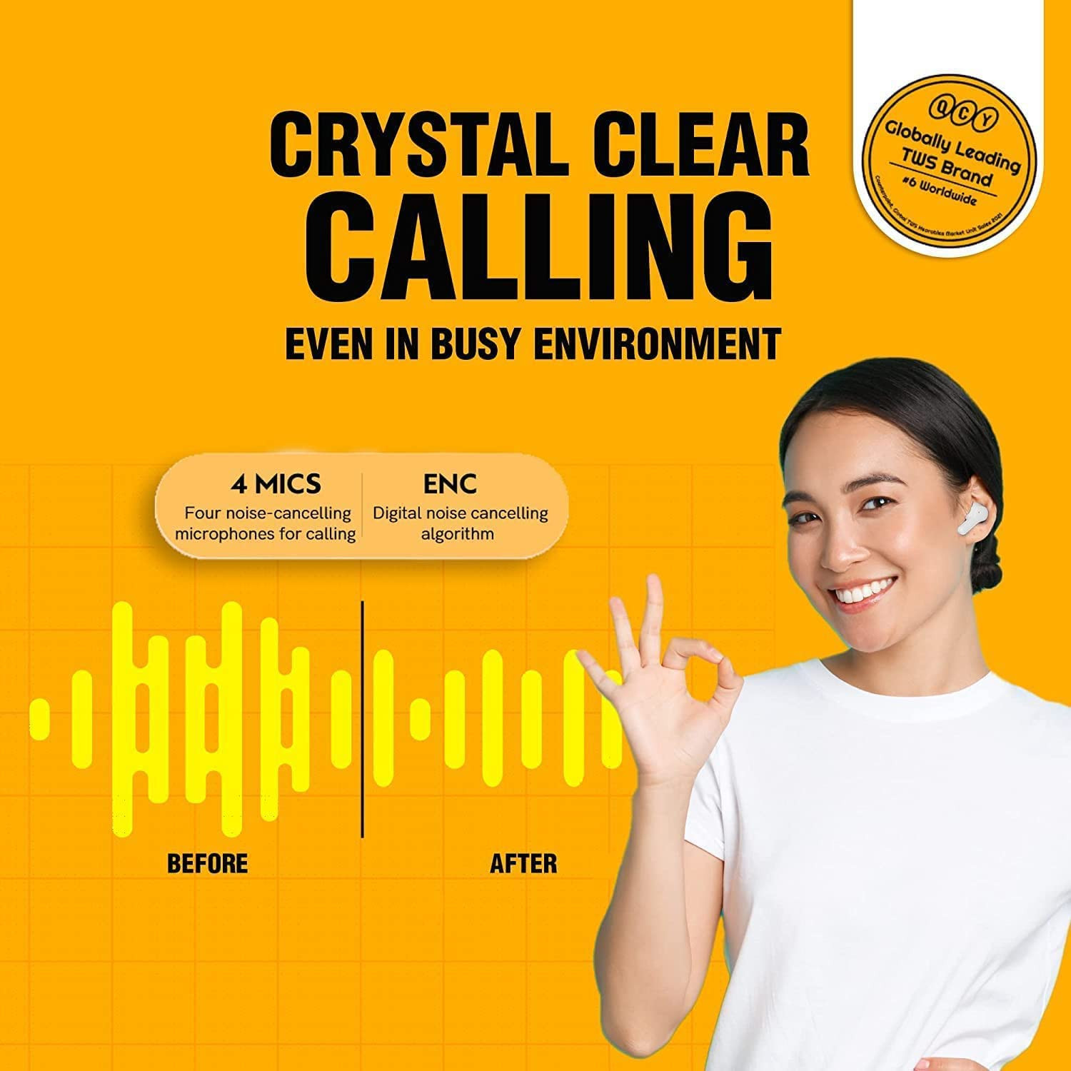 • ➤STEREO SOUND QUALITY & ENC NOISE CANCELLATION--QCY T13 Earbuds' 7.2mm large size speaker driver delivers powerful bass, mellow midrange, and clear treble. Reproducing your music vividly. ENC noise cancellation ensures clear calls voice in the best way and the other for reducing the ambient noise around, making the QCY T13 perfect for conference calls, online courses and video/voice chat.