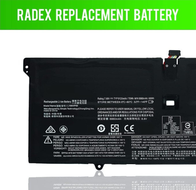 We offer the best price for Radex L16M4P60 High Grade Compatible Laptop Battery, For Lenovo Yoga 920-13IKB / 80Y7005EBM / 80Y70063US / 5B10N01565, 7.68 Volts, 70Wh, 4 Cell Type, Black | L16M4P60 in Saudi Arabia. Buy now with the best price!