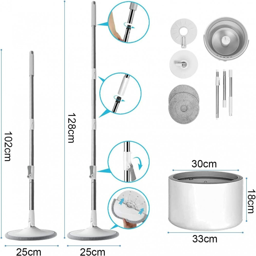 Information that may interest you: The mop head rotates 360 degrees, and the attached handle has a flexible joint that moves at an angle of 180 degrees, making it easy for you to clean and reach difficult places such as the bottom of the sofa, the top of the wall, the surfaces of the windows, and others.