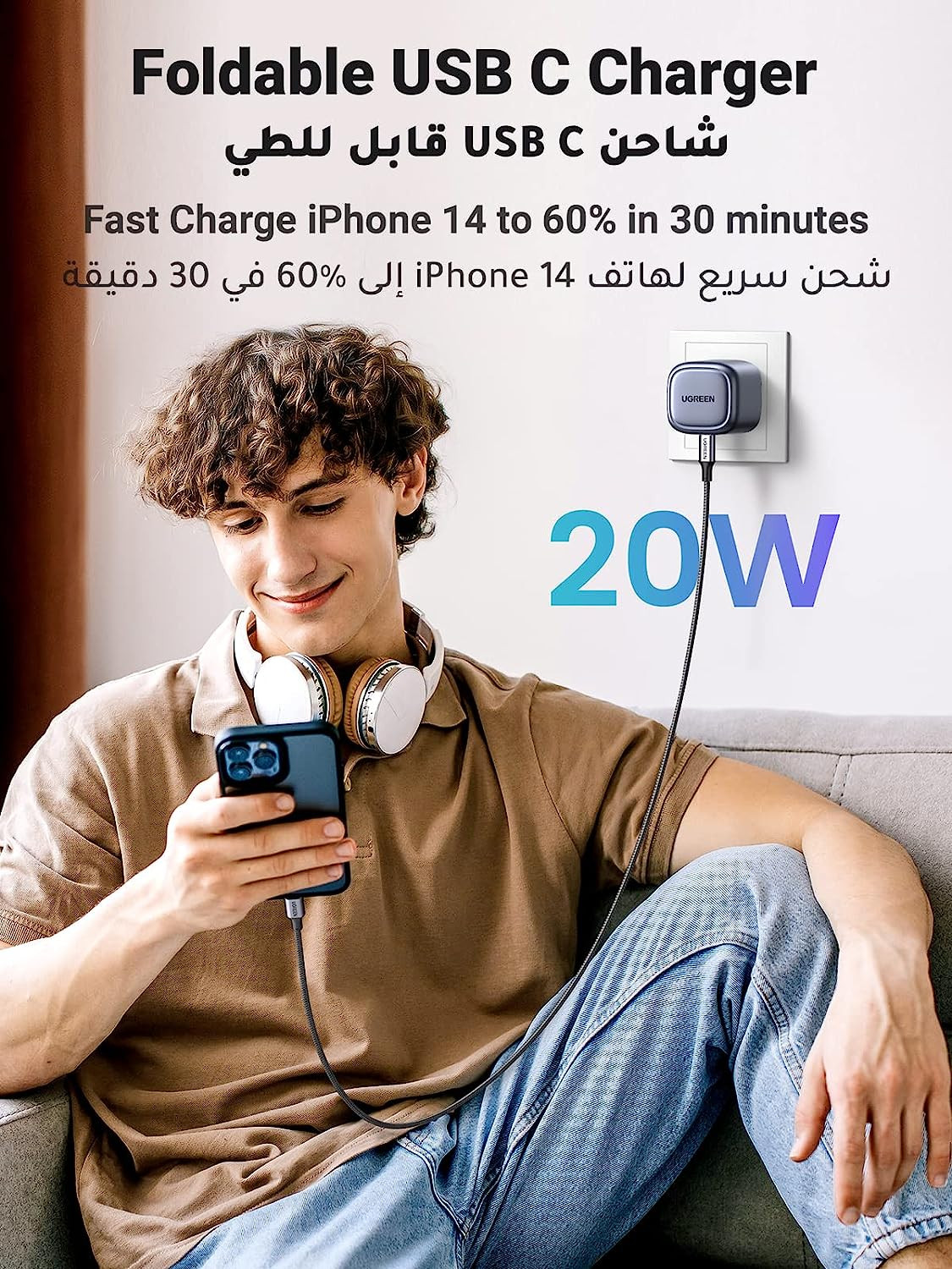 Buy 1 Get 1 Free- UGREEN Nexode USB C Charger [GaN Tech] 20W Mini USB-C Power Adapter iPhone Charger Type C Foldable Wall Fast Charger PD Charging USB Plug for iPhone 14 Pro max/Samsung -Free Cell Pho