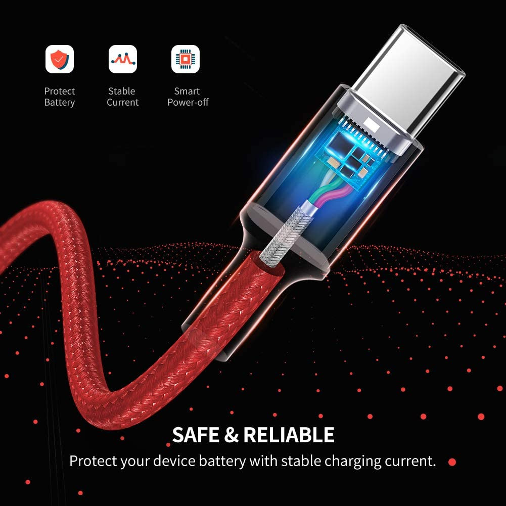 Safer and More Reliable: This USB Type C cable was made by USB-IF certified manufacturer. Fully complies with USB C fast charge protocol and built-in 56KΩ pull-up resistor & a latest intelligent chip, this Charging Cable provides a reliable conductivity and stable charging current, prevents your devices from damages due to over-current / over-voltage / over-temperature.